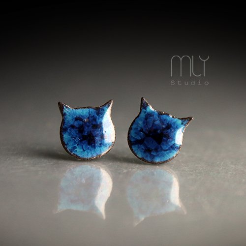 Efektowne kolczyki w formie sztyftów, ręcznie wykonane z delikatnej czekoladowobrązowej gliny kamionkowej, jednostronnie szkliwione błękitnym szkliwem, na antyalergicznych sztyftach.długość elementu ceramicznego ok. 11mm, Polecam