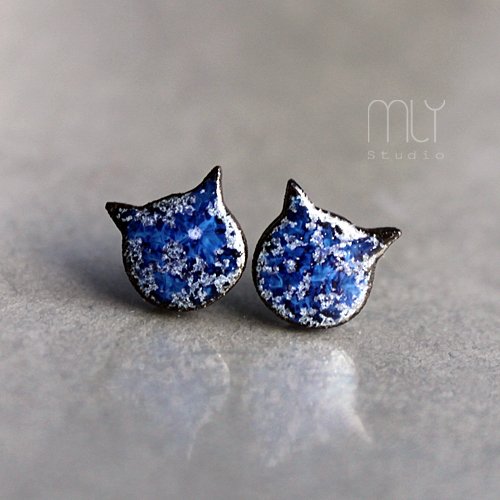 Efektowne kolczyki w formie sztyftów, ręcznie wykonane z delikatnej czekoladowobrązowej gliny kamionkowej, jednostronnie szkliwione błękitnym szkliwem, na antyalergicznych sztyftach.długość elementu ceramicznego ok. 11mm, Polecam