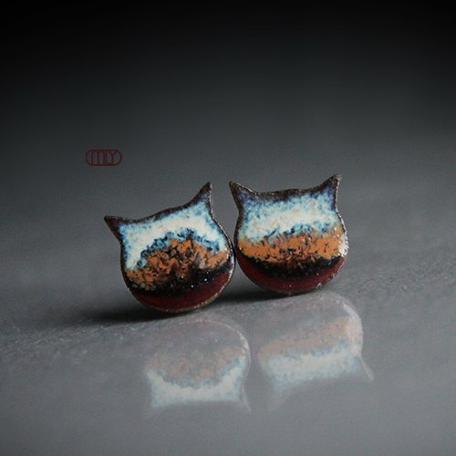 Efektowne kolczyki w formie sztyftów, ręcznie wykonane z delikatnej gliny kamionkowej, jednostronnie szkliwione kremowo bordowym szkliwem z efektem plamek, na antyalergicznych sztyftach w kolorze srebrnym.długość elementu ceramicznego ok. 11mm, Polecam