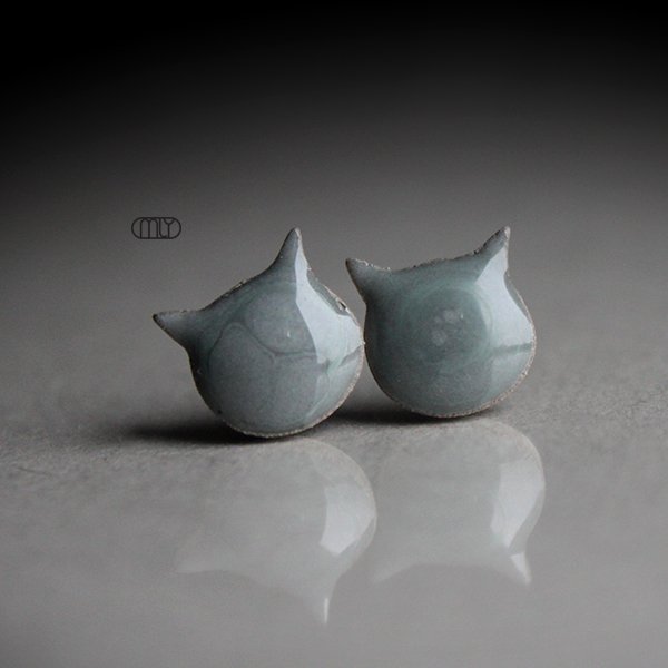 Efektowne kolczyki w formie sztyftów, ręcznie wykonane z delikatnej czekoladowobrązowej gliny kamionkowej, jednostronnie szkliwione szarym szkliwem, na antyalergicznych sztyftach w kolorze srebrnym.długość elementu ceramicznego ok. 11mm, Polecam