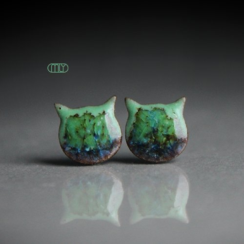 Efektowne kolczyki w formie sztyftów, ręcznie wykonane z delikatnej czekoladowobrązowej gliny kamionkowej, jednostronnie szkliwione zielonym szkliwem, na antyalergicznych sztyftach w kolorze srebrnym.długość elementu ceramicznego ok. 11mm, Polecam