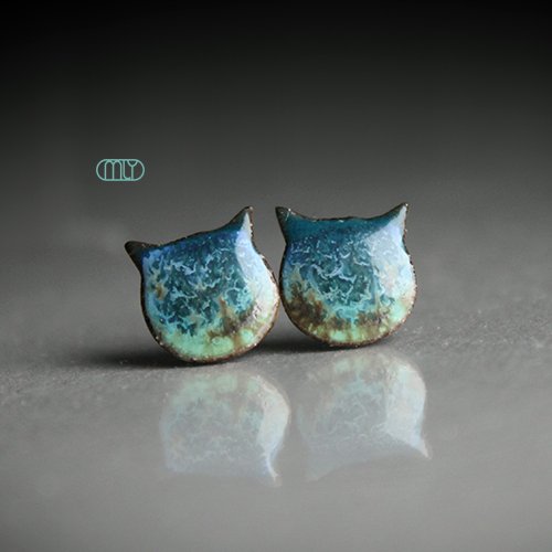 Efektowne kolczyki w formie sztyftów, ręcznie wykonane z delikatnej czekoladowobrązowej gliny kamionkowej, jednostronnie szkliwione zielonym szkliwem, na antyalergicznych sztyftach w kolorze srebrnym.długość elementu ceramicznego ok. 11mm, Polecam