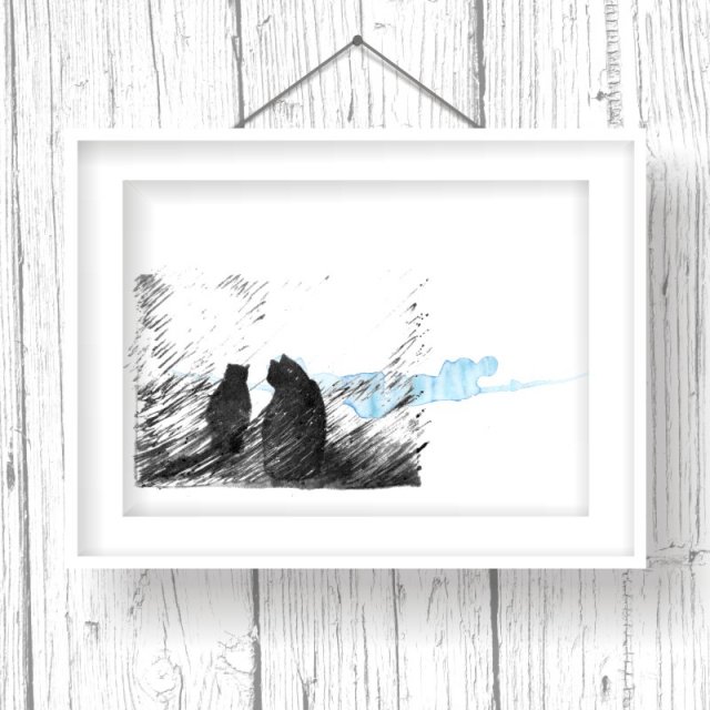 Reprodukcja ilustracji wykonanej piórkiem z dodatkiem akwareli. Wydruk atramentowy na papierze fotograficznym w formacie ok. 20x30 cm. (A4). Ilustracja wymaga oprawy.