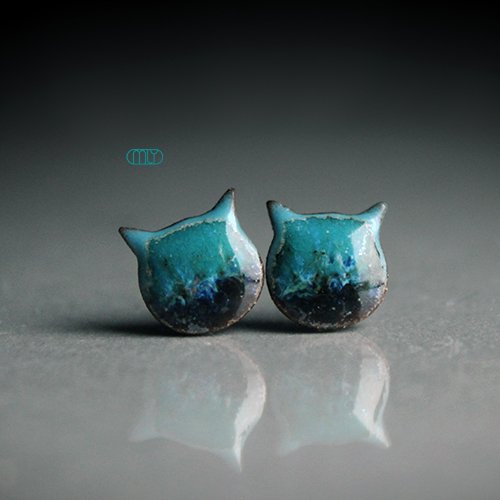 Efektowne kolczyki w formie sztyftów, ręcznie wykonane z delikatnej czekoladowobrązowej gliny kamionkowej, jednostronnie szkliwione zielonym szkliwem, na antyalergicznych sztyftach w kolorze srebrnym.długość elementu ceramicznego ok. 11mm, Polecam