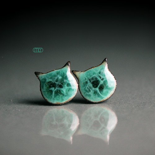 Efektowne kolczyki w formie sztyftów, ręcznie wykonane z delikatnej czekoladowobrązowej gliny kamionkowej, jednostronnie szkliwione zielonym szkliwem, na antyalergicznych sztyftach w kolorze srebrnym.długość elementu ceramicznego ok. 11mm, Polecam