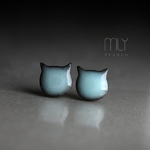 Efektowne kolczyki w formie sztyftów, ręcznie wykonane z delikatnej porcelany, barwionej na czarno, jednostronnie szkliwione blado zielonym szkliwem, na antyalergicznych sztyftach w kolorze srebrnym.długość elementu ceramicznego ok. 10mm, Polecam