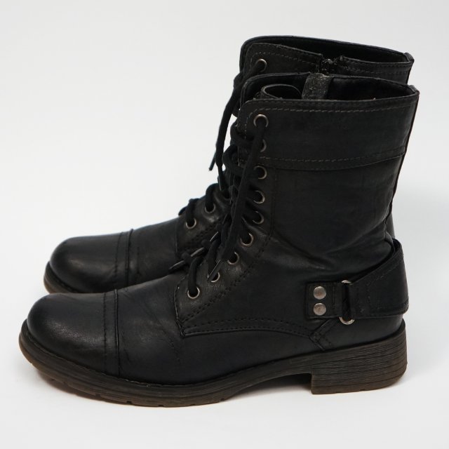 Czarne wiązane kozaki z ekoskóry w rozkowym stylu