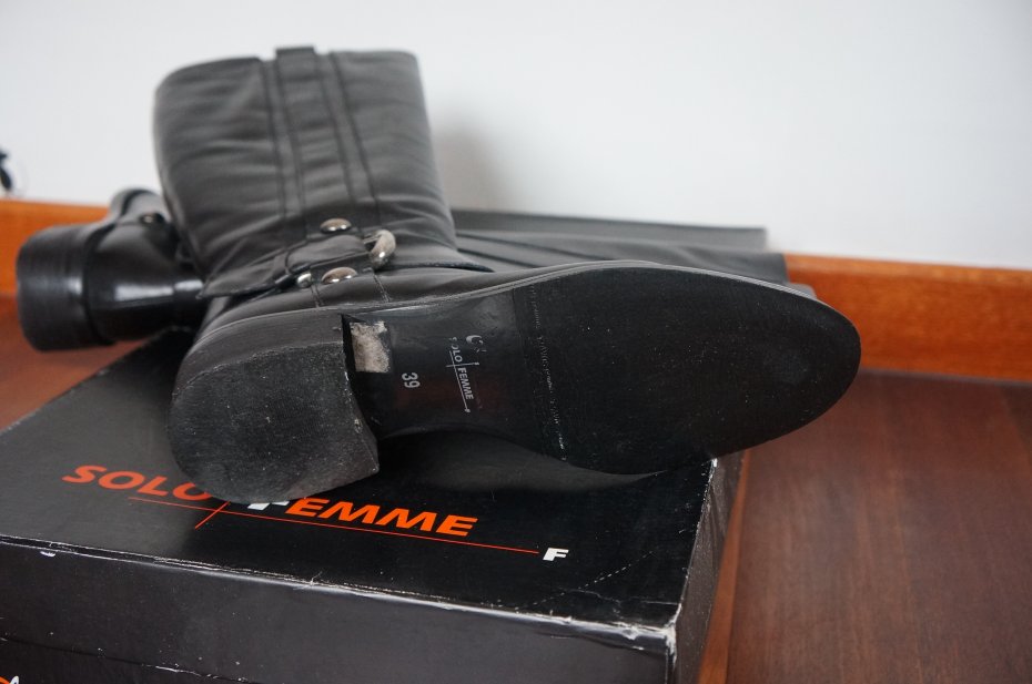 Skórzane kozaki damskie marki Solo Femme. Kolor czarny. Zapinane na zamek. Ocieplane.Stan bardzo dobry.