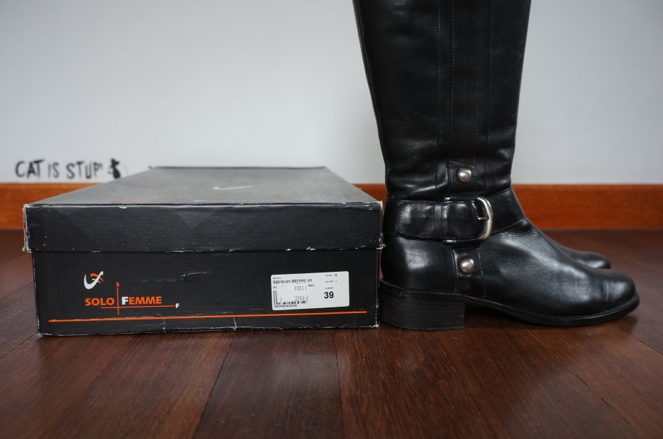Skórzane kozaki damskie marki Solo Femme. Kolor czarny. Zapinane na zamek. Ocieplane.Stan bardzo dobry.