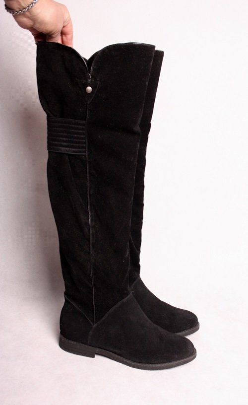 Wysokie,sięgajace za kolano,zamszowe,czarne kozaki,lekka ocieplina,wygodne,stan bardzo dobry,/NIE NOSZONE/rozm.39,firmy CROPP,,cholewki mazna wywijac,dl.wkladki 25/25,5cm.,dl.cholewki od obcasa 53cm,szer.w lydce 2x20cm