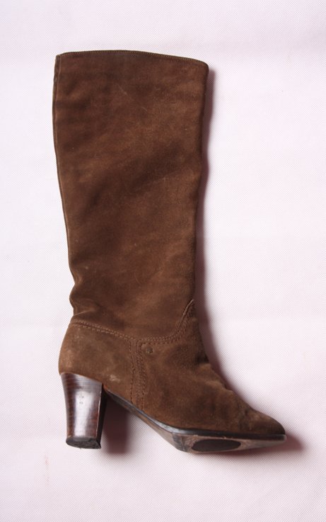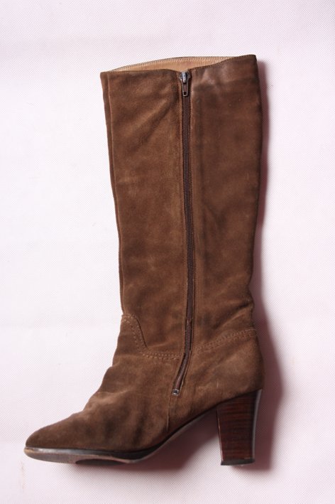 Kozaki z prawdziwego zamszu, ocieplane delikatnym kozuszkiem, firmowe,,noski okrąge,