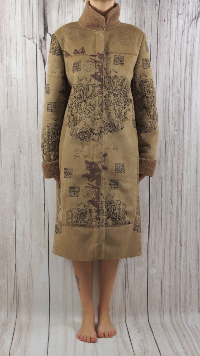 Cudowny kożuszek eko w japońskie wzory. Podszewka to jakby baranek.