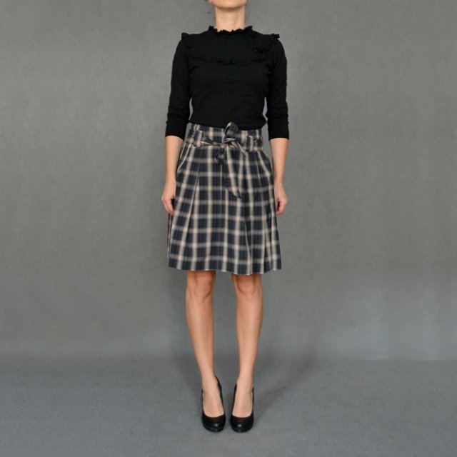 Bawełniana spódnica w kratkę z kieszonkami po bokach i wiązaniem w talii. Bez podszewki.