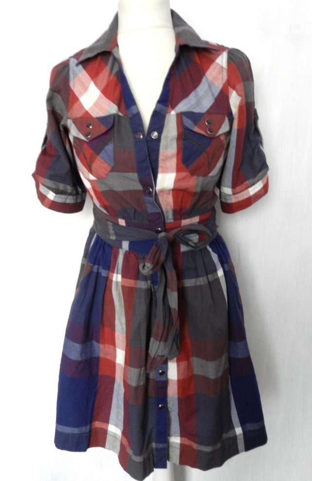 Casualowa sukienka w kratę z kołnierzykiem, rękawami do łokcia