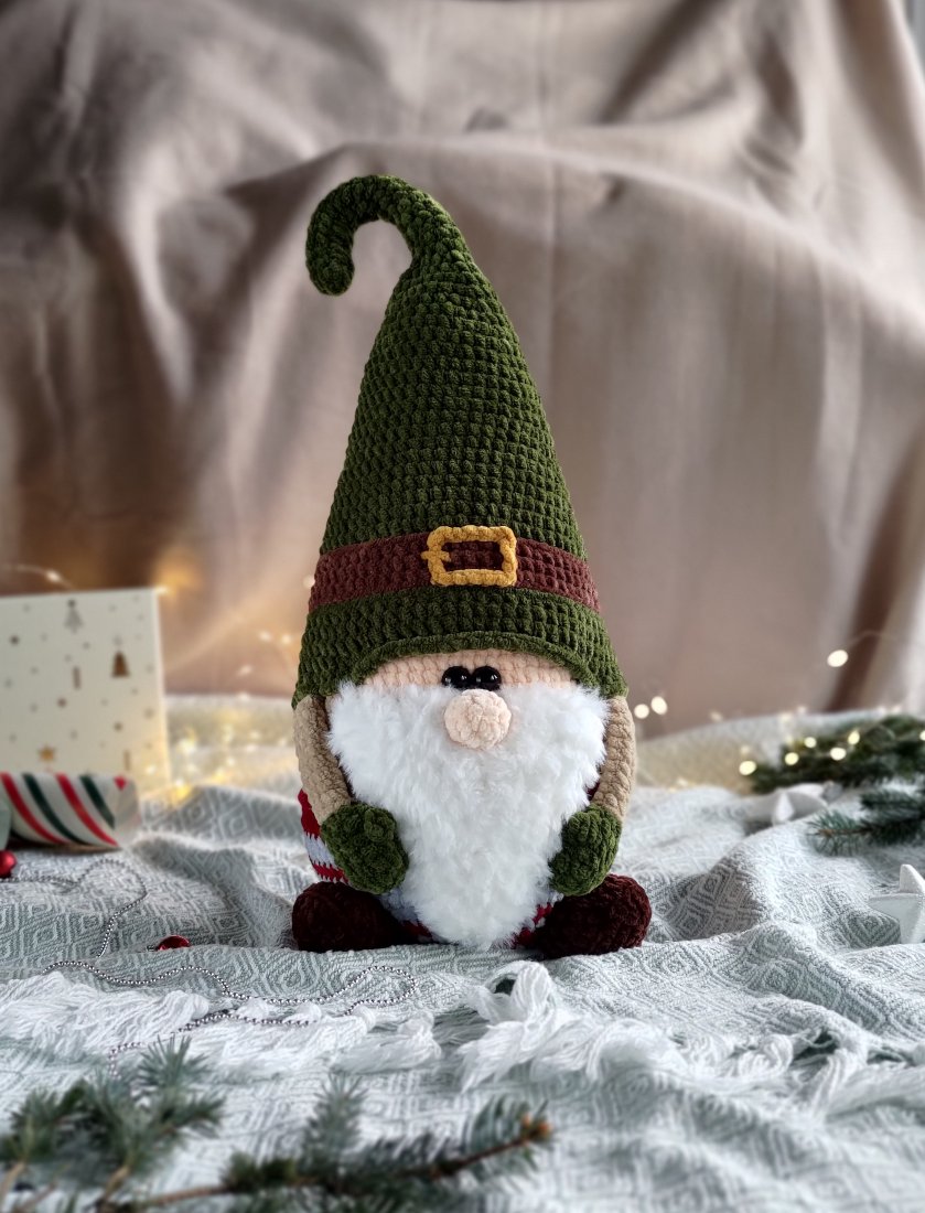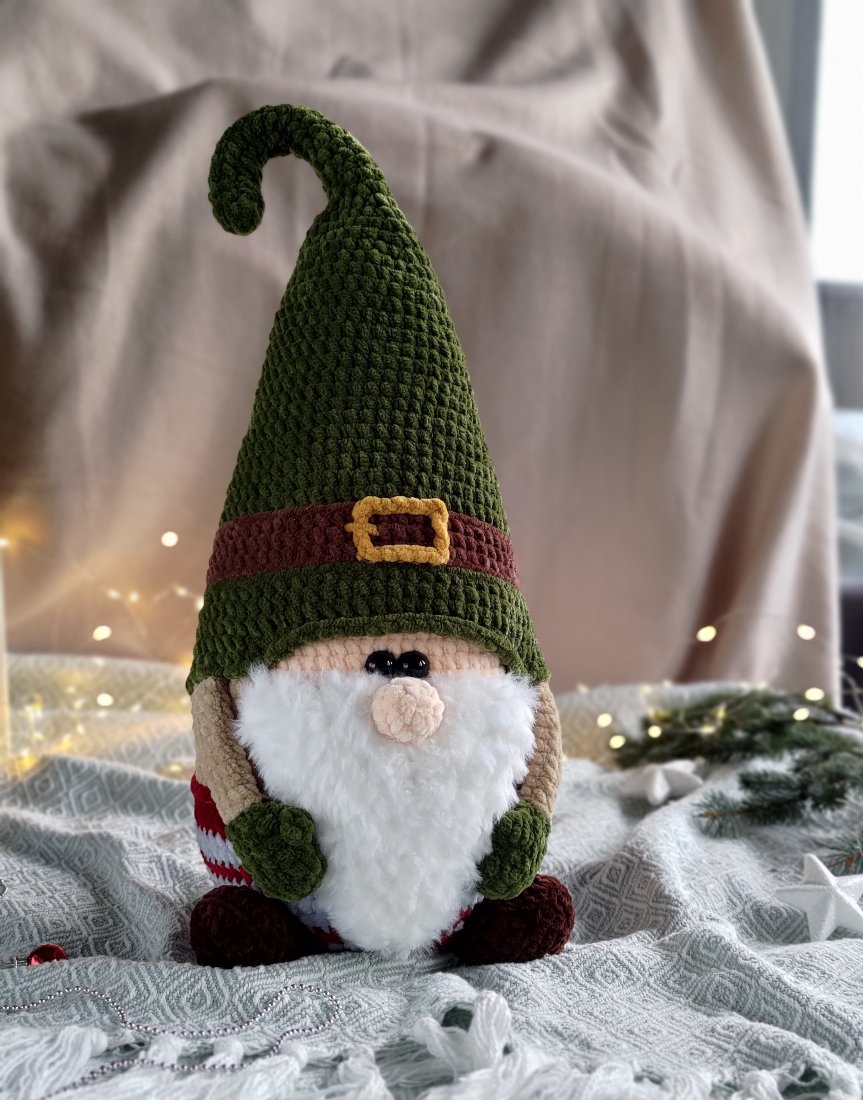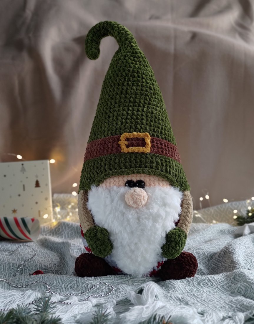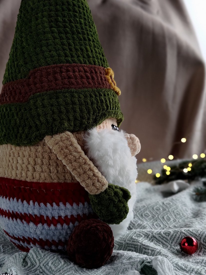 Duży krasnal świąteczny wykonany na szydełku to jest bardzo niesamowita dekoracja na święta Bożego Narodzenia oraz Nowy rok!
