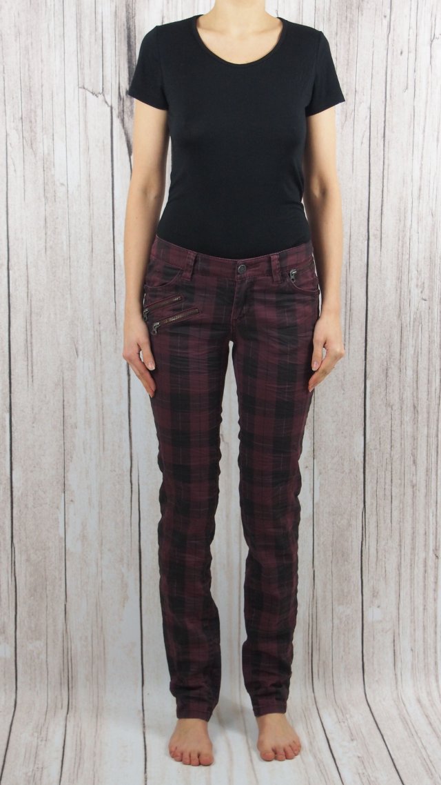Jeansy w kratkę marki Espirit. Z zameczkami przy kieszeniach. Krój skin.