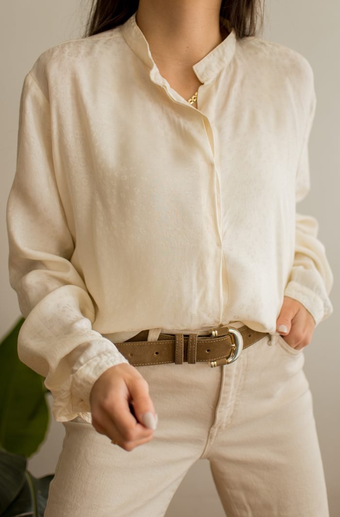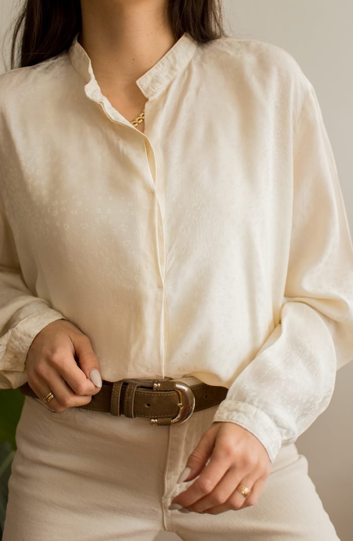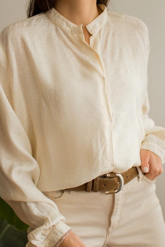 Kremowa bluzka koszulowa w delikatne cętki.