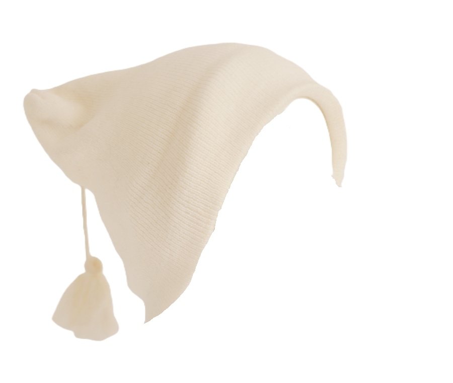 Ciepła czapka vintage z kremowej dzianiny, wykończona z tyłu pełnym uroku, delikatnym chwostem. Można nosić w wersji wywiniętej lub nie.
