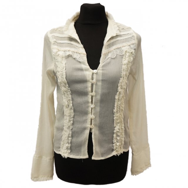 Śliczna klasyczna kremowa koszula ozdobiona różnymi tasiemkami