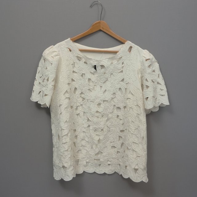Przepiękna oversizeowa bluzka wykonana z kremowej koronki.