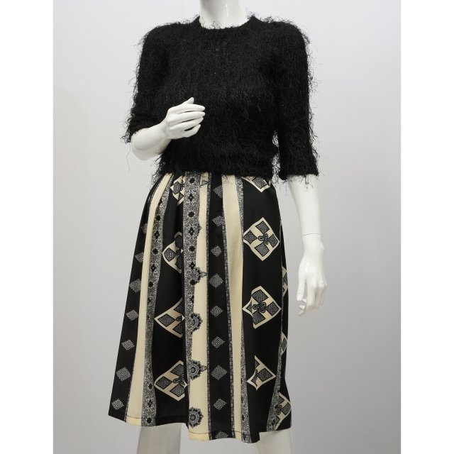 Wzorzysta kremowo-czarna spódnica z gumką w talii.