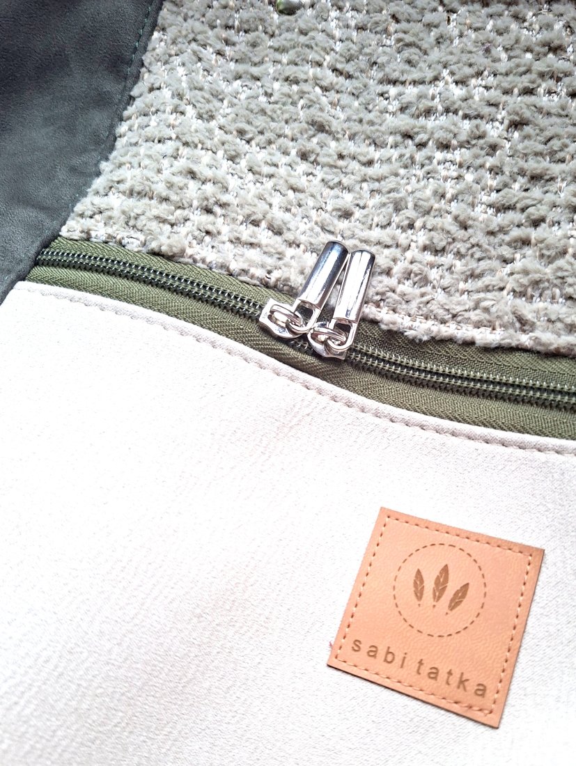 ❤ Materiał wierzchni: szałwiowa plecionka + nubuk ekologiczny kremowy i czekoladowy (rączki) + zamsz ekologiczny khaki po bokach . Wysoka trwałość materiałów tapicerskich: odporne na tarcie, światło, mechacenie i rozciąganie. Nubuk posiada certyfikat Oeko-tex. Tkaniny łatwoczyszczące - posiada powłokę utrudniającą wchłanianie płynów. Torebkę można poddać impregnacji preparatem do tekstyliów lub obuwia.