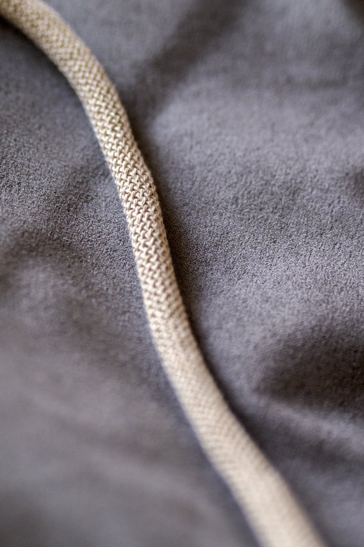 Grube, bawełniane sznurki w kolorze beżowym.