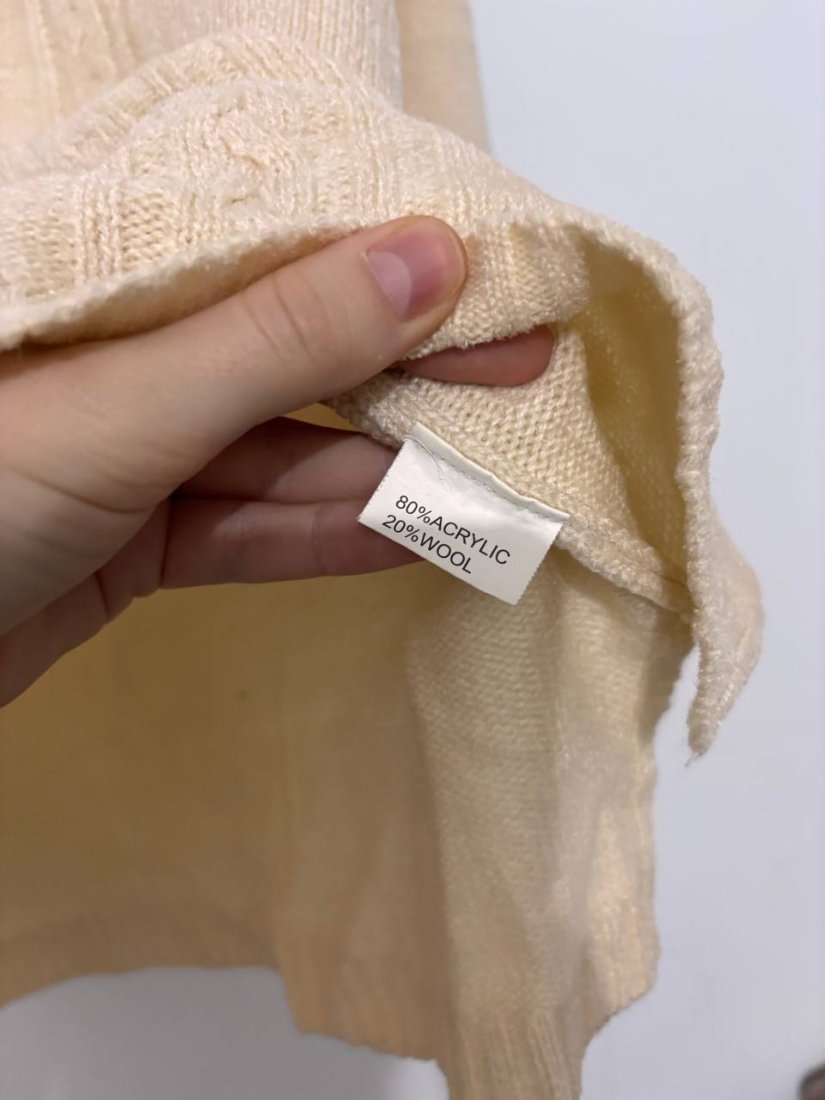 Miękki kremowy sweter z półgolfem i eleganckim zamkiem. Model wykonany z ciepłej mieszanki 80% akryl i 20% wełny — lekki, przyjemny w dotyku i idealny na chłodniejsze dni. Klasyczny warkoczowy splot dodaje mu stylowego, ponadczasowego charakteru. Sweter jest wygodny, nie gryzie i świetnie układa się na sylwetce.