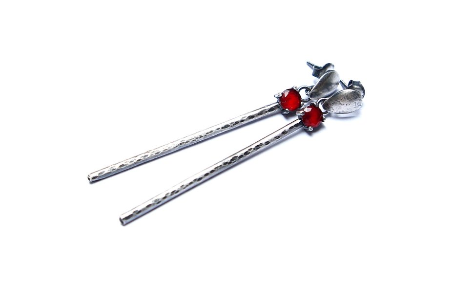 Kolczyki wykonane od podstaw ze srebra [pr. 925] w połączeniu z cyrkoniami [5mm]. Całość oksydowana i przetarta. Całkowita długość kolczyków 6,5cm. Biżuteria ozdobnie zapakowana.