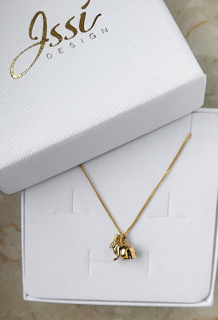 Naszyjnik z zawieszką w kształcie króliczka. Wykonany ze srebra pr.925 pokrytego 24kt złotem.