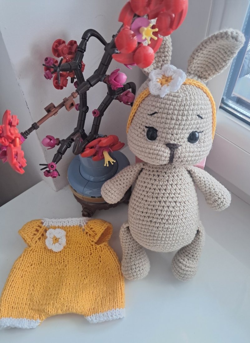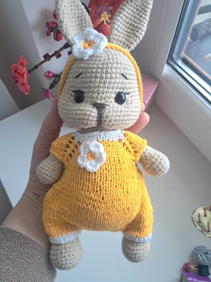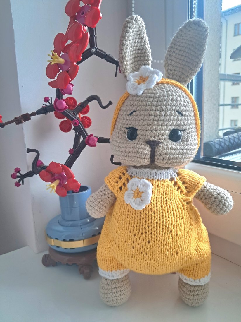 Króliczek/zajączek robiony na szydełku. Idealny na prezent. Rękodzieło na szydełku. Idealny na prezent dla. Wypełnienie kulką sylikonową,bezpieczne oczka. Wysokość 27 cm.