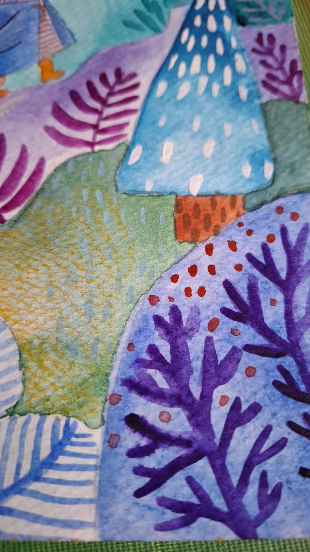 Wymiary 29,5 cm x 20 cm. Idealnie pasuje do ramy typu passe partout. Obrazy malowane na papierze akwarelowym mogą posiadać plamki z farby (przód i tył), co świadczy o oryginalności pracy artystycznej, nie jest to wydruk. Kolory na pracy mogą nieznacznie różnić się od tych widocznych na ekranach. Praca sprzedawana bez ramy, ilustracja do wysyłki zabezpieczona kartonem.