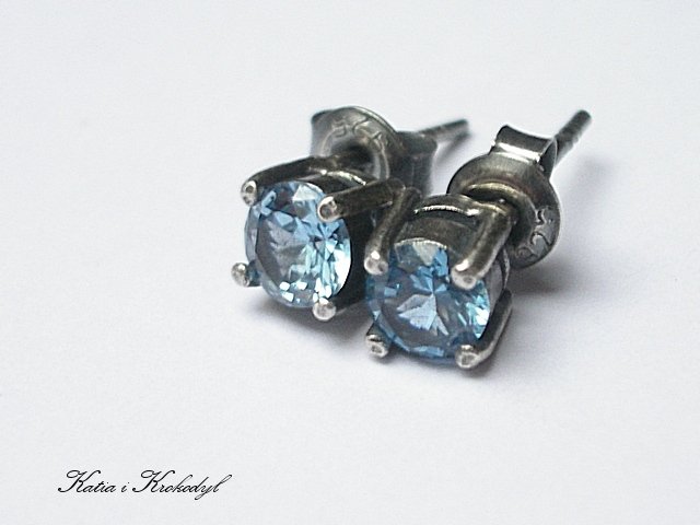 Kolczyki sztyfty wykonane ręcznie ze srebra [pr. 925 i 930] w połączeniu z cyrkoniami [5mm]. Całość oksydowana i przetarta. Biżuteria ozdobnie zapakowana