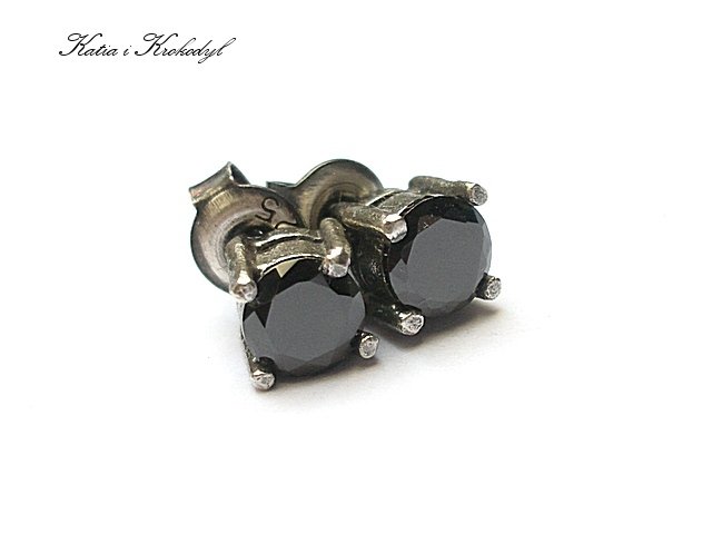 Kolczyki sztyfty wykonane ręcznie ze srebra [pr. 925 i 930] w połączeniu z cyrkoniami w [5mm]. Całość oksydowana i przetarta. Biżuteria ozdobnie zapakowana