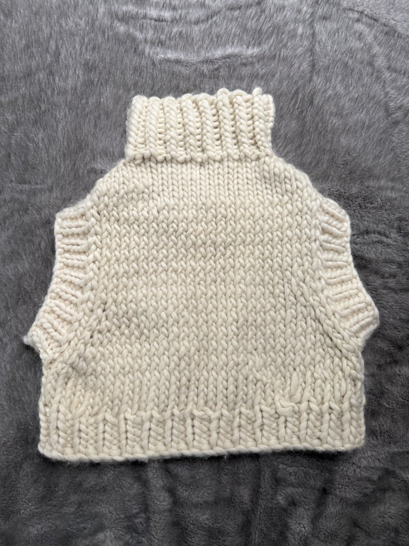 Krótki sweter z dzianiny. Z golfem. Rozmiar XS. Wymiary na zdjęciu. Stan bardzo dobry.