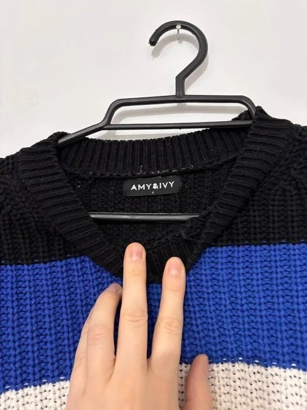 #sweater #stripedsweater #colorblocksweater #croppedsweater #oversizesweater #amyivysweater #shortsweater #loosesweater #chunkysweater #cottonsweater #acrylicsweater #autumnsweater #wintersweater #droppedshoulders #womenssweater #secondhandsweater #polandsweater #outfitsweater #comfortsweater #basicsweater #trendysweater #universalsize #sizeSsweater #highwaisted #softsweater #fashionsweater #clothing #womenswear #stripesweater #blueblacksweater