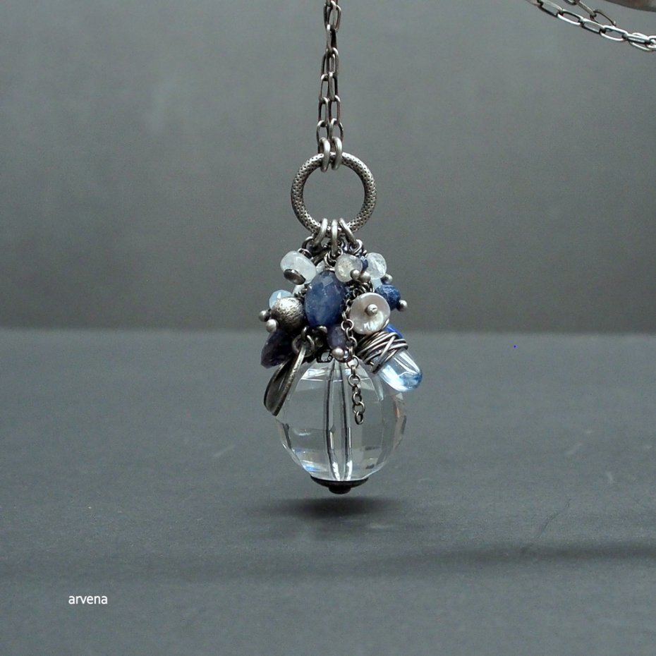 Tagi: #długi wisiorek, #kryształ górski, #srebro oksydowane, #szafir