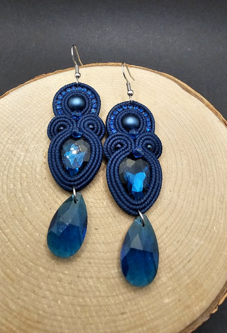 Tagi: #haftowane kolczyki, #sutasz, #szklane koraliki, #wiszące kolczyki