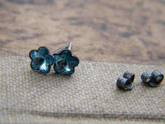 kolczyki.oksydowane srebro 925 i kryształy swarovski. srednica kwiatka 6mm.