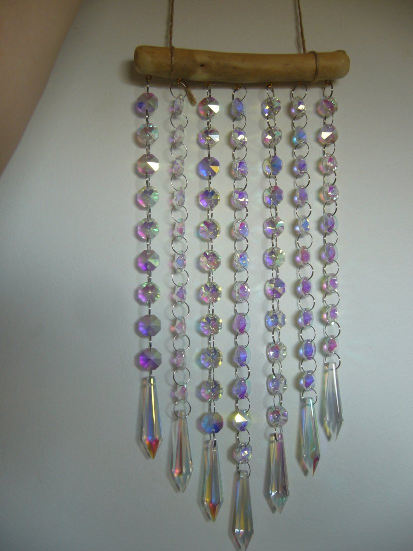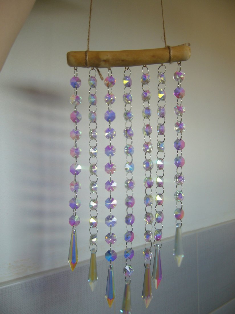 Cudowny łapacz słońca wykonany z drewna i szklanych kryształków