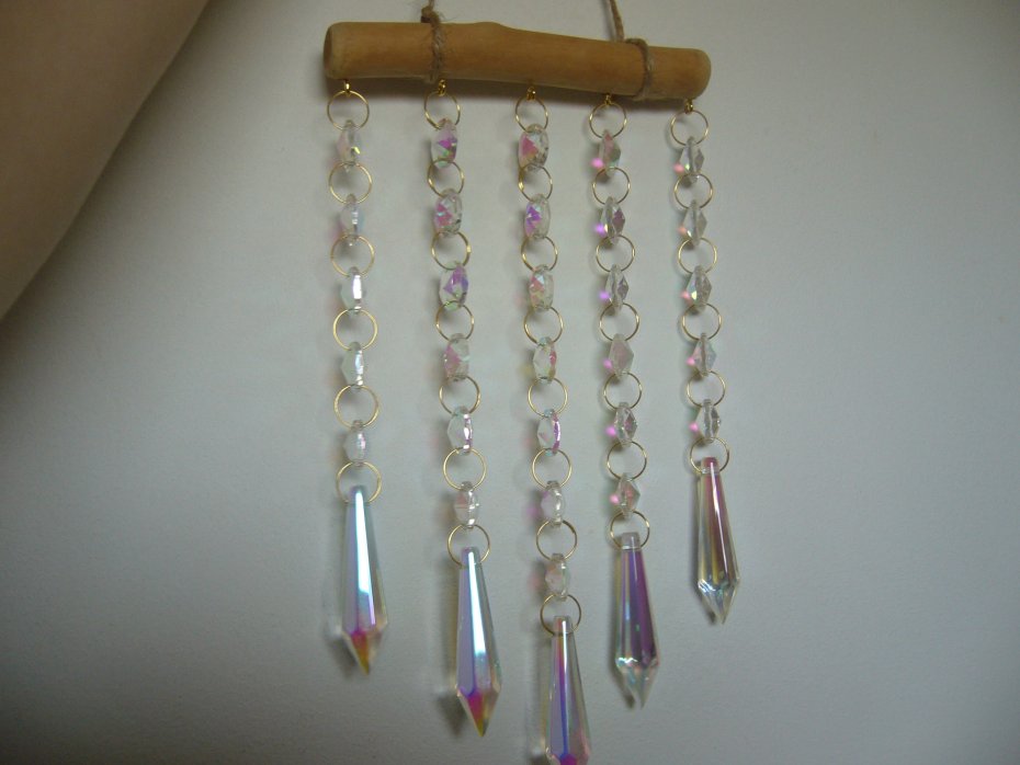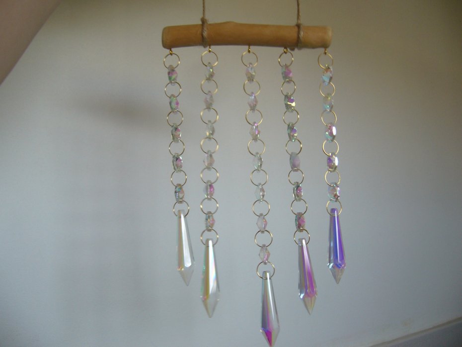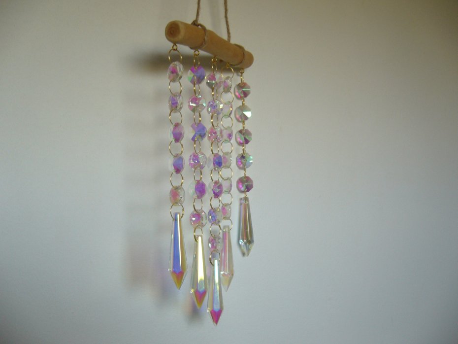 Cudowny łapacz słońca wykonany z drewna i szklanych kryształków
