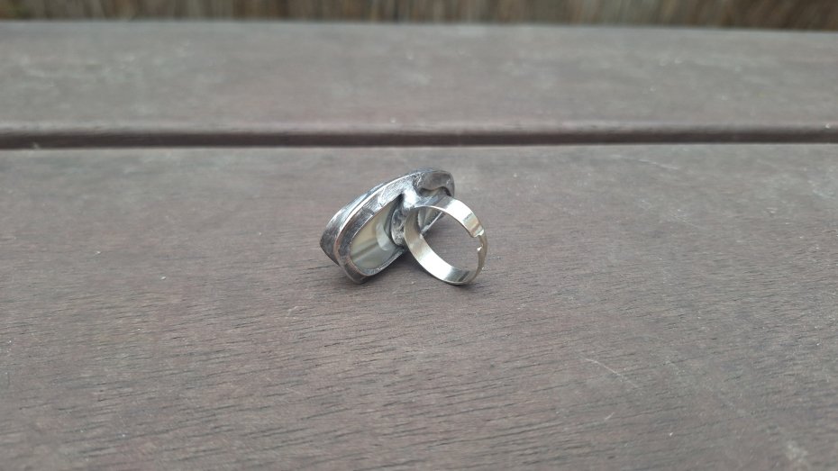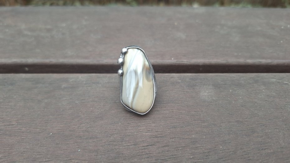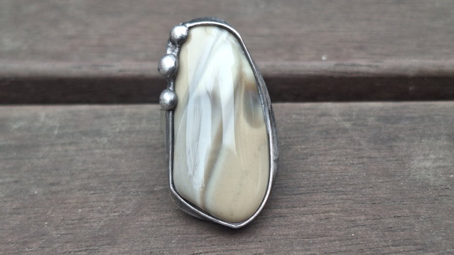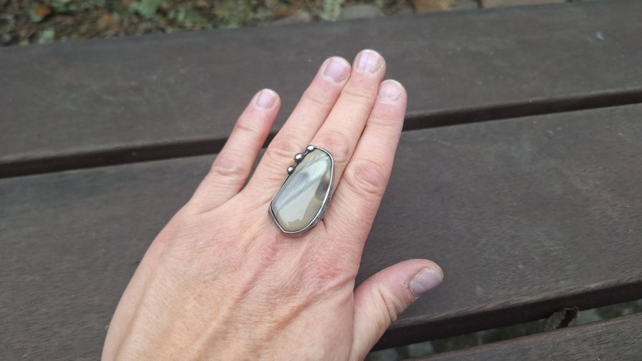 Tagi: #krzemień pasiasty, #regulowany pierścionek, #szary pierścionek, #witrażowy pierścionek