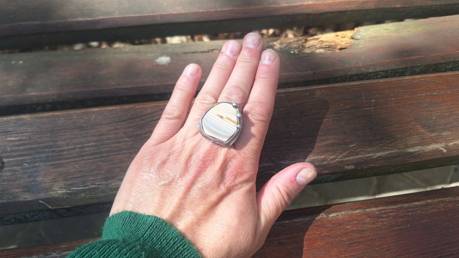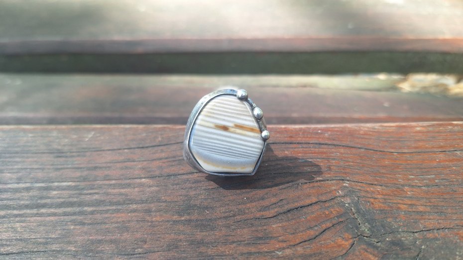 Tagi: #krzemień pasiasty, #pierścionek regulowany, #szary pierścionek