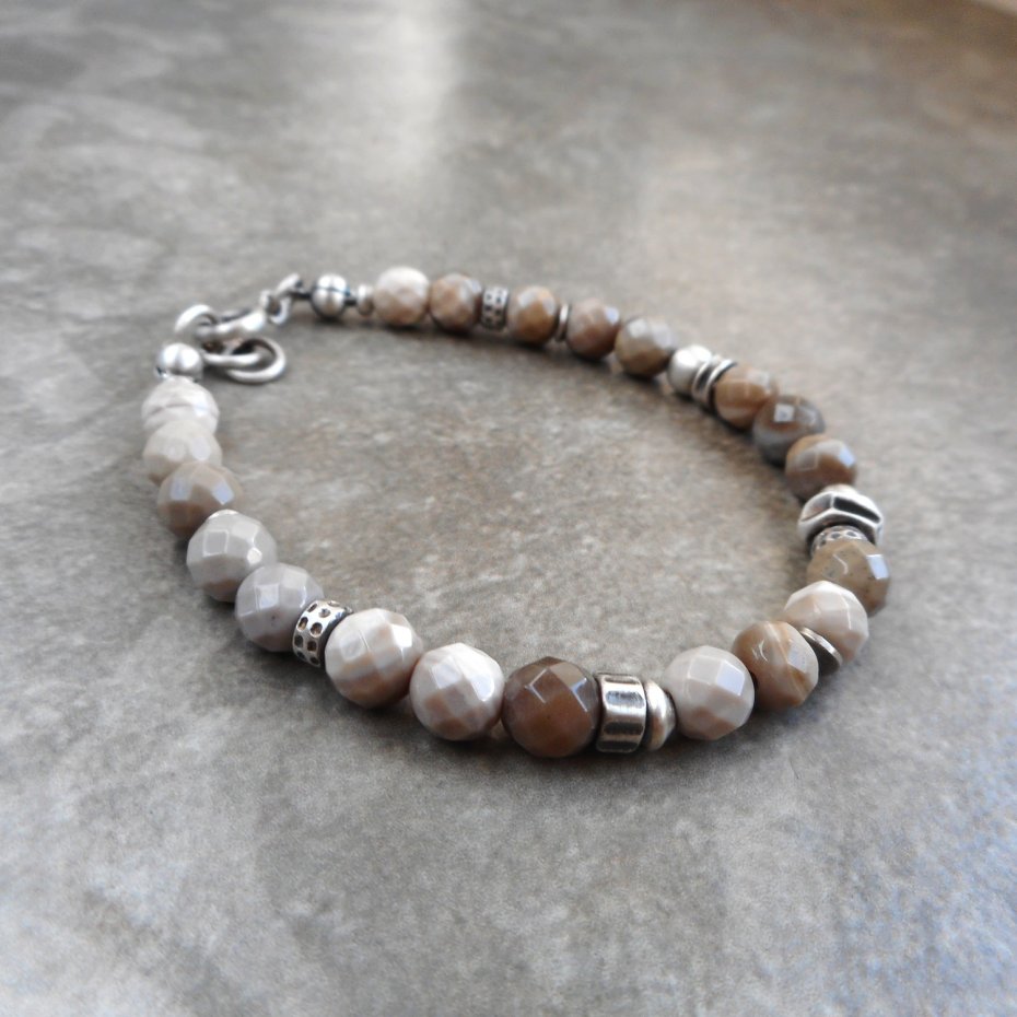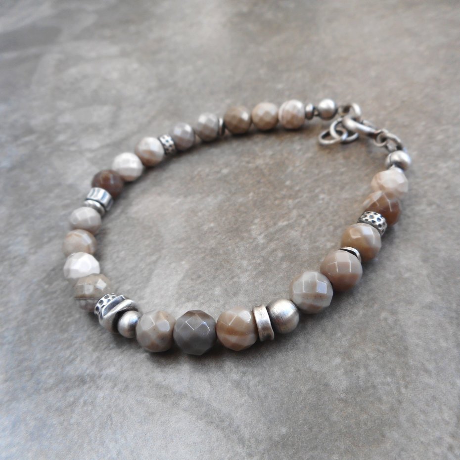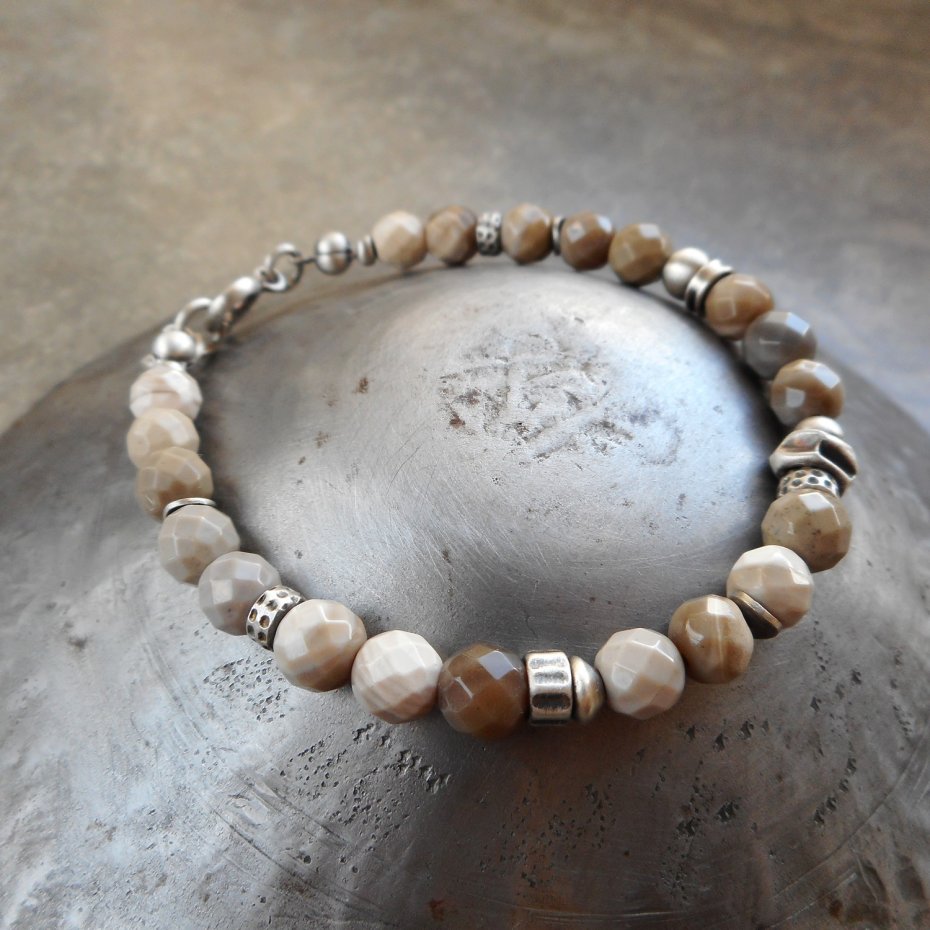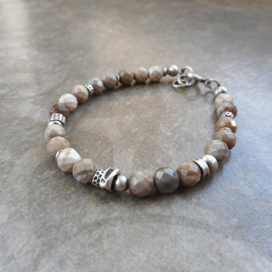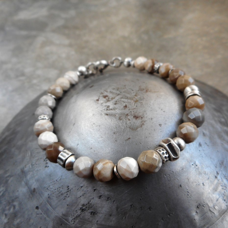 Wyjątkowa bransoletka z kamieni naturalnych i szlachetnego srebra; klasyczna i elegancka, z pięknym krzemieniem pasiastym nazywanym polskim diamentem. Do kompletu polecam kolczyki dostępne w mojej galerii.