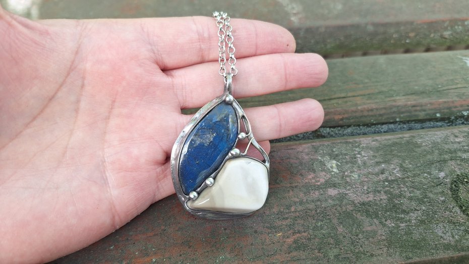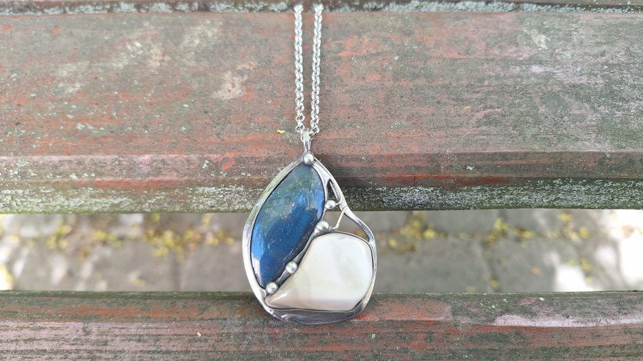 Tagi: #niebieski wisiorek, #prezent dla niej, #wisiorek z krzemieniem, #wisiorek z labradorytem