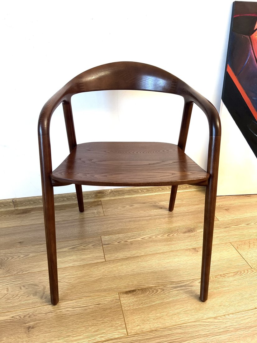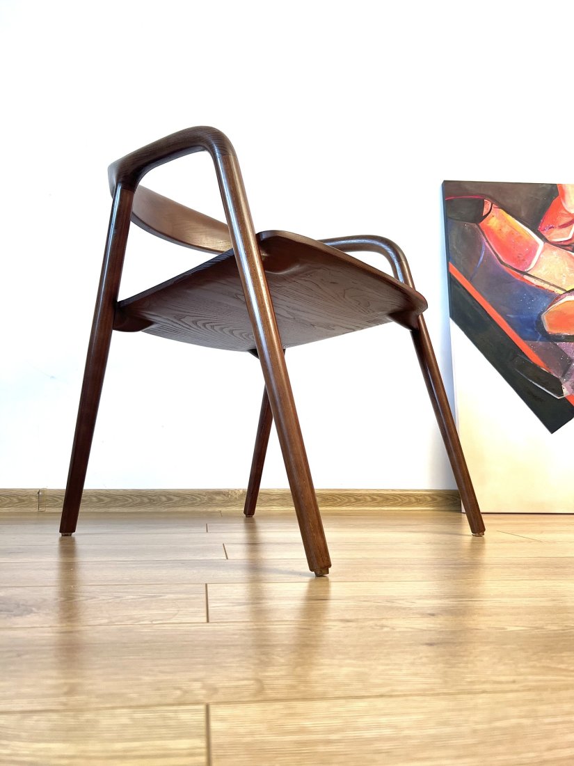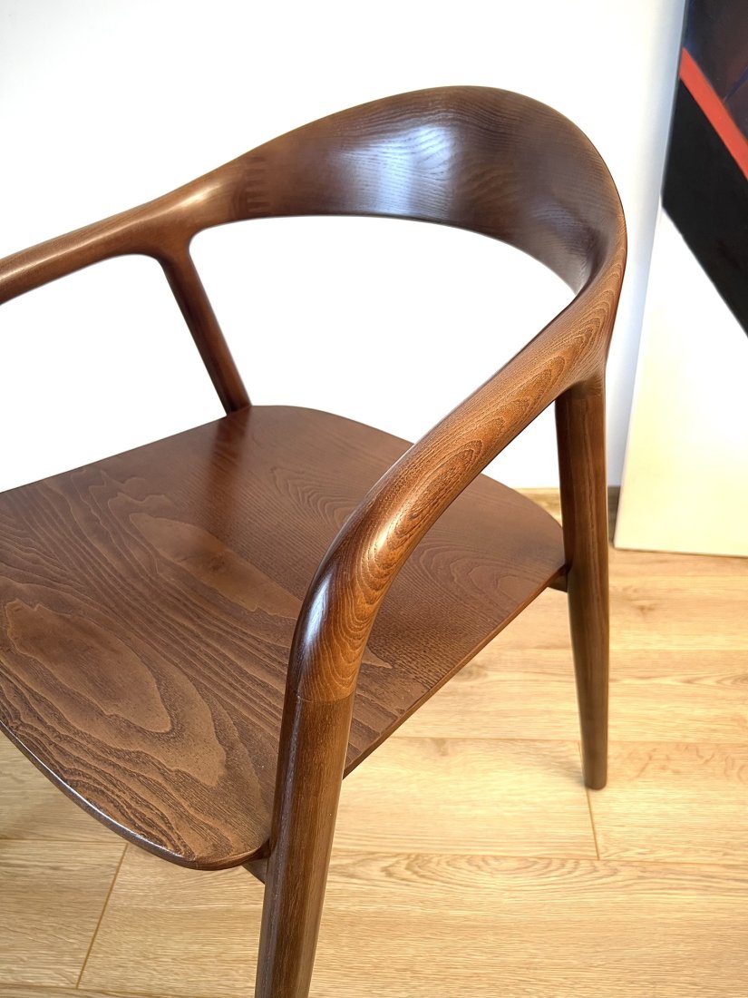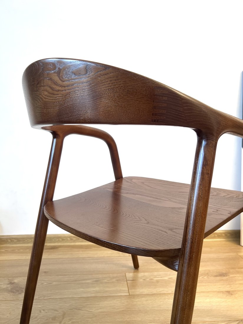 Nasz najnowszy model krzesła! Stylowe krzesło wykonane z litego drewna jesionowego, które zachwyca minimalistycznym designem i perfekcyjnym wykonaniem. Delikatnie zaokrąglone linie oparcia oraz podłokietników nadają mu lekkości, a jednocześnie podkreślają solidność konstrukcji.