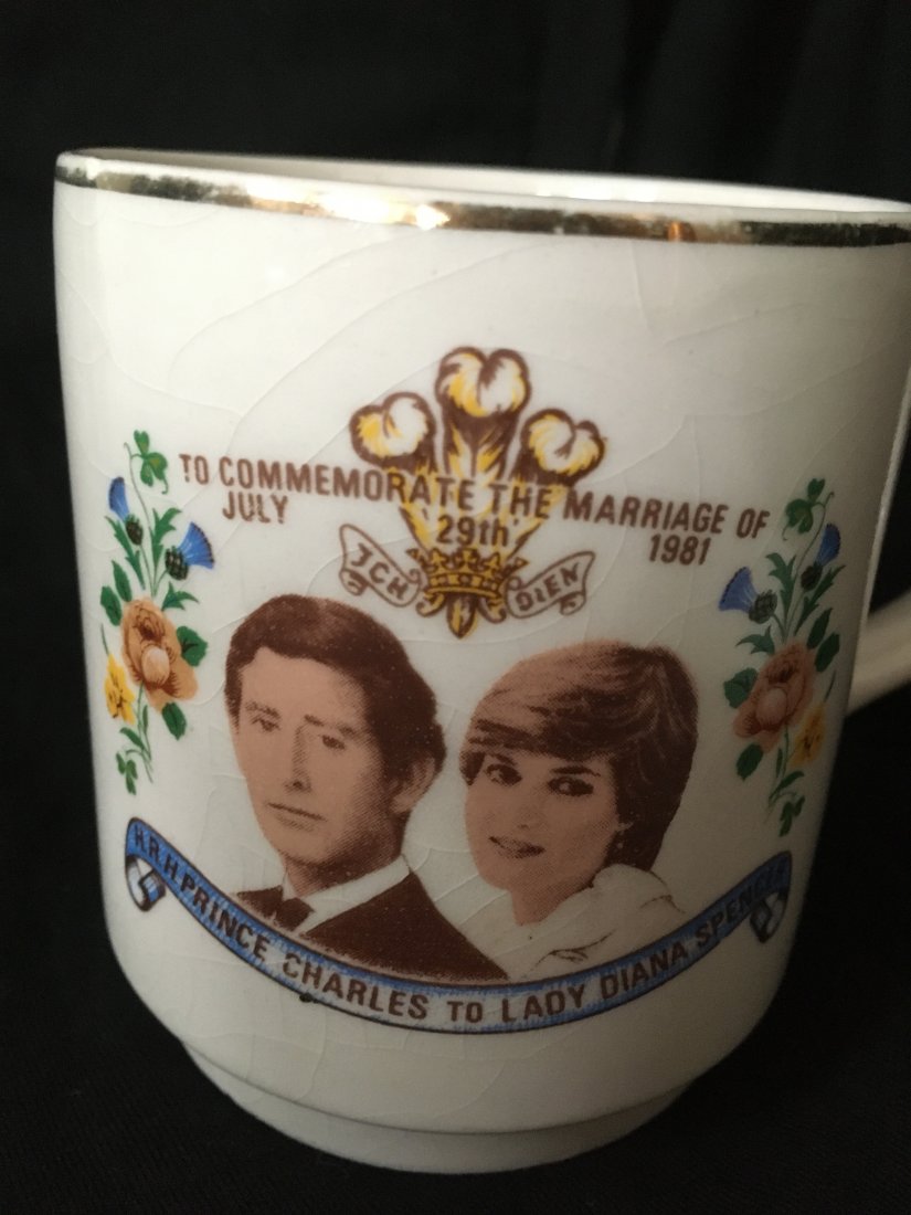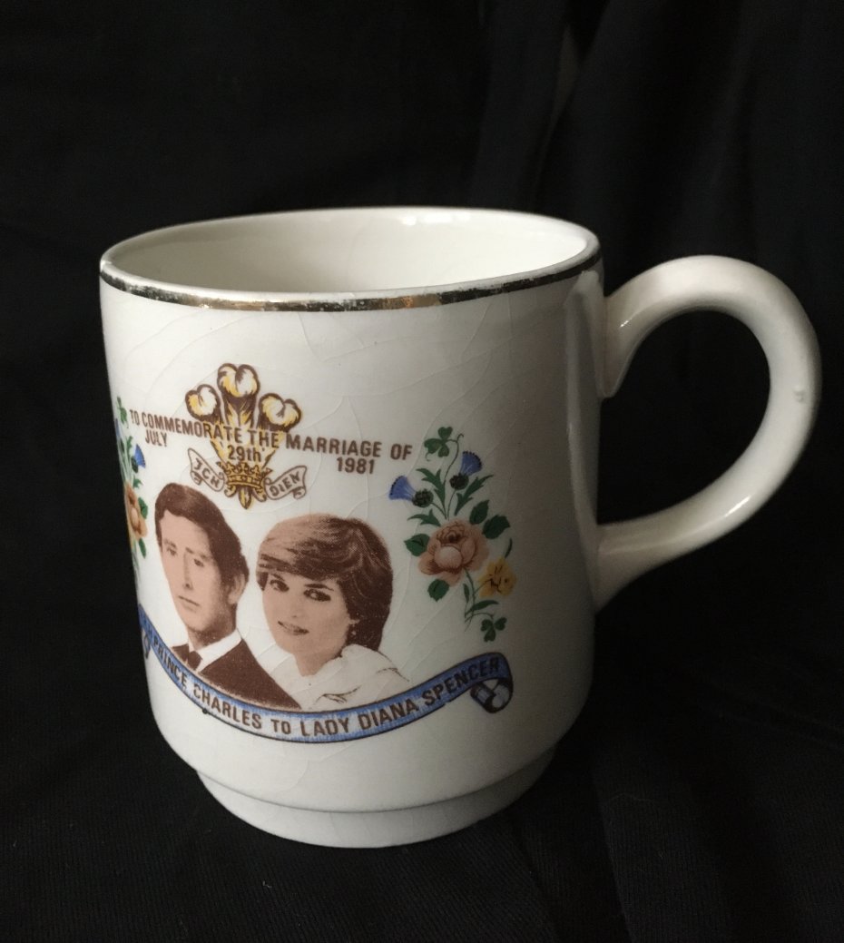 Pamiątkowy kubek Vintage z 1981 roku upamiętniający ślub Księcia Karola i Lady Di.
