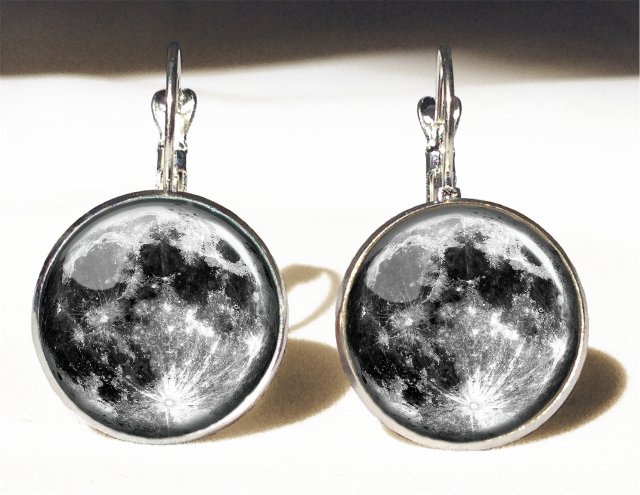 Ręcznie robione kolczyki wiszące z wysokiej jakości grafiką pokrytą wypukłym, powiększającym szkiełkiem.