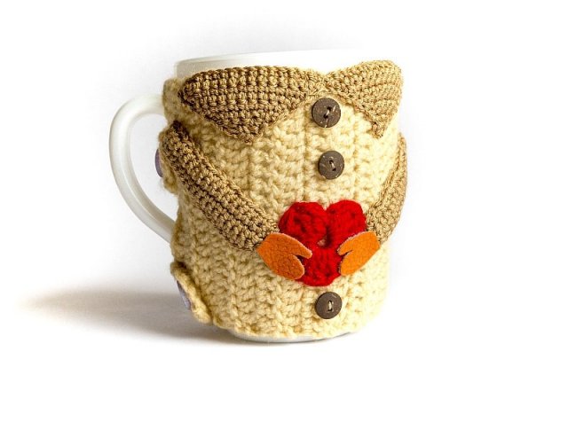 Ocieplacz na kubek, ręcznie wykonany na szydełku z włóczki.