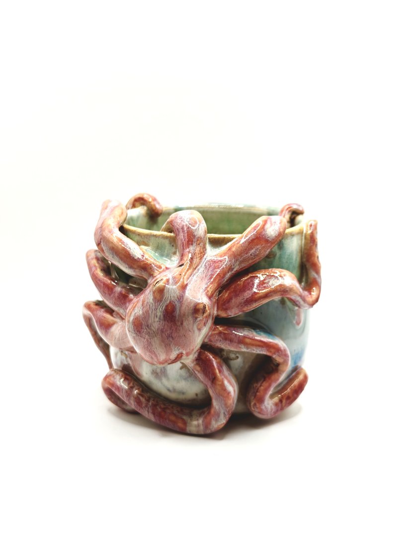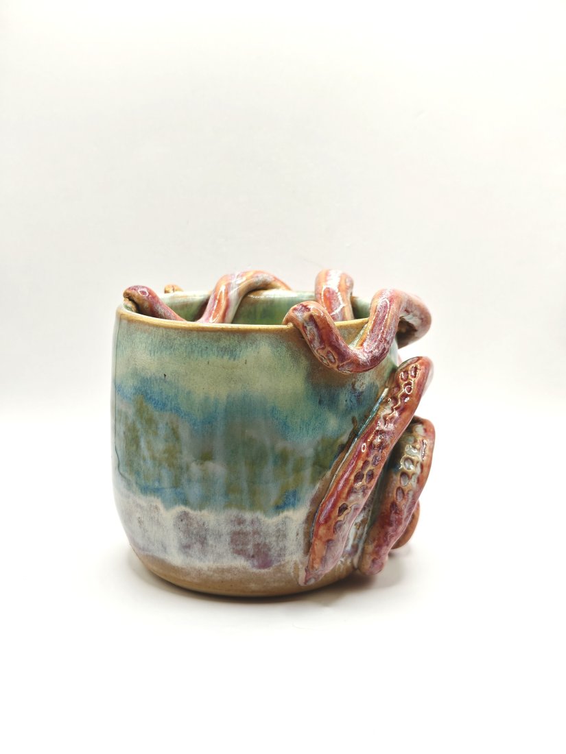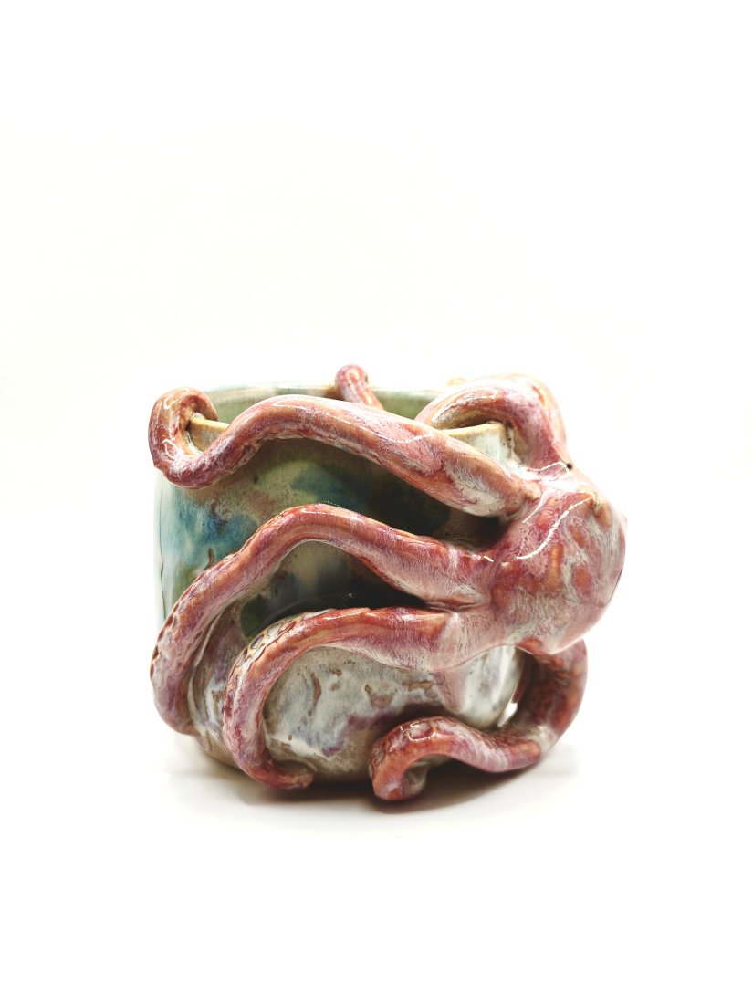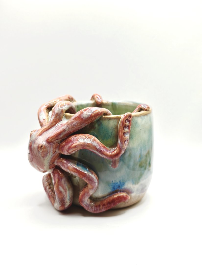 Ceramiczny kubek handmade z ośmiornicą ????